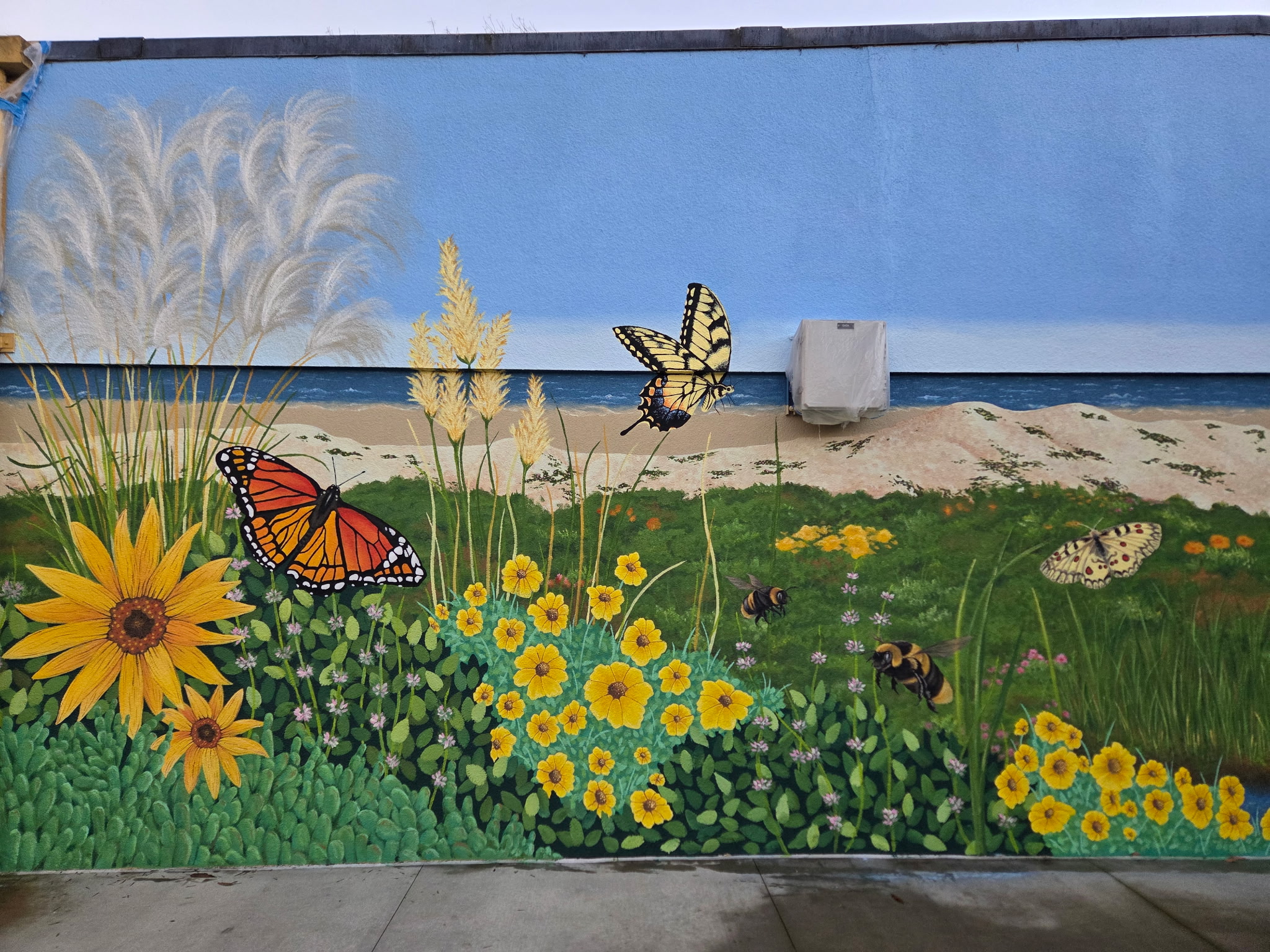 A vibrant mural that features a design with native species, plant life, and a background that reflects the school's surrounding community.